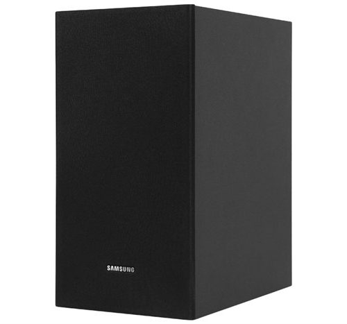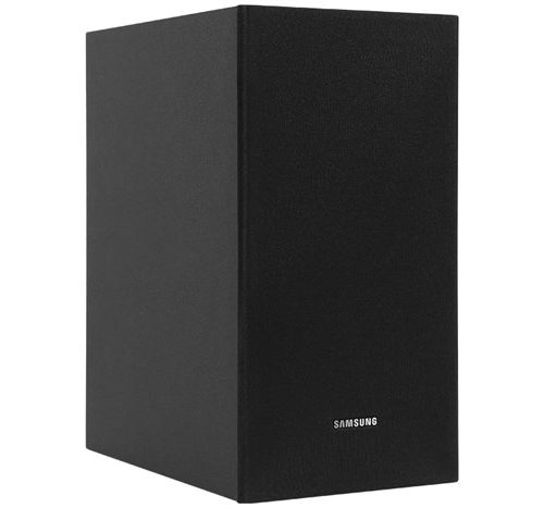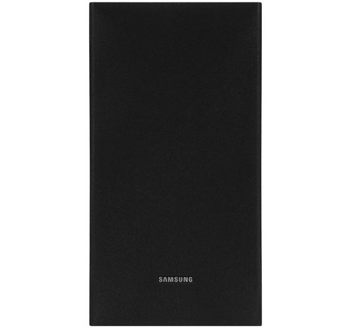 Loa thanh Samsung HW-T420 với thiết kế dạng hình khối màu đen có các cạnh góc vuông tạo nên sự tinh tế, sang trọng cho căn phòng của bạn.