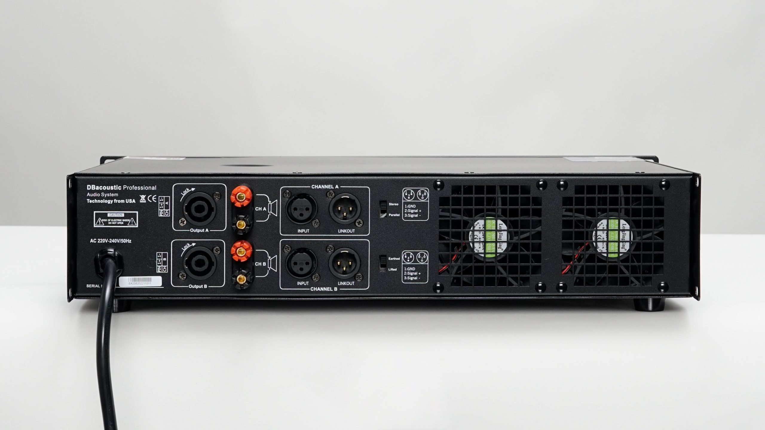 Phần mặt sau bố trí cổng kết nối XLR – Speakon chuẩn Neutrik, quạt tản nhiệt lớn và khe thông gió giúp lưu thông khí hiệu quả, đảm bảo hoạt động ổn định trong thời gian dài.