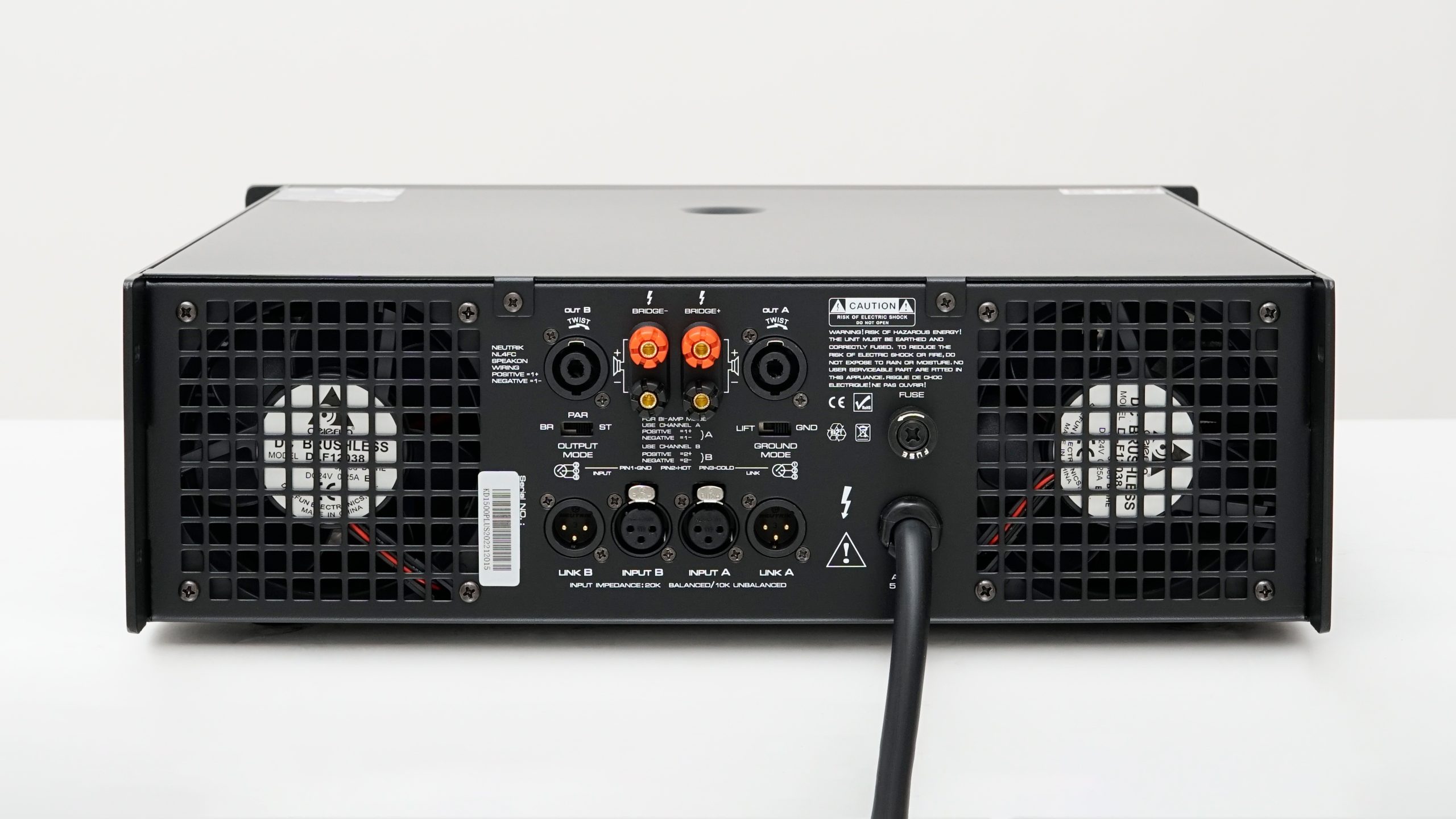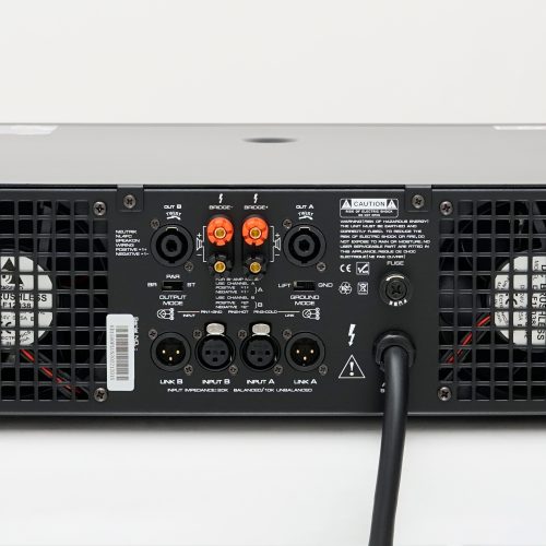 Mặt sau bố trí dây nguồn, cổng XLR tiêu chuẩn, cùng 2 quạt làm mát tự động điều tốc, giúp hoạt động êm ái và tiết kiệm điện năng.