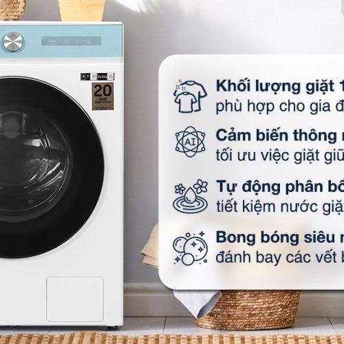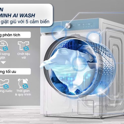 – Công nghệ giặt AI Wash tự động tính toán như lượng nước giặt, nước xả, thời gian giặt sao cho phù hợp với chất liệu vải, độ bẩn, khối lượng đồ trong lồng giặt, giúp tối ưu lượng nước giặt xả và lượng nước.