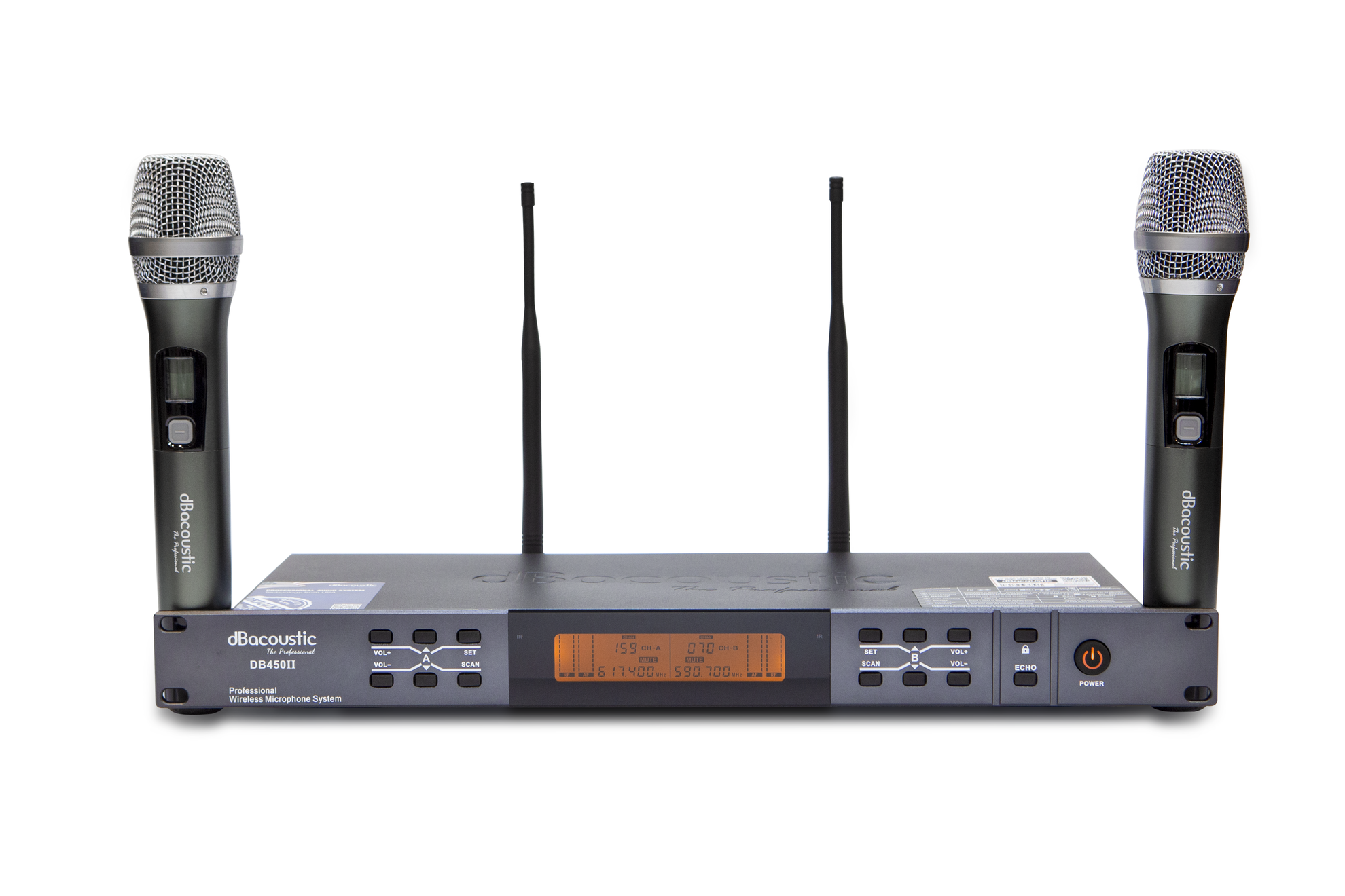 Micro không dây DBacoustic DB450II là dòng micro cao cấp dành cho karaoke gia đình, kinh doanh, hội trường, sân khấu.