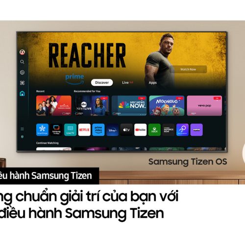 Giao diện của Tizen được thiết kế tối giản, trực quan, giúp người dùng dễ dàng điều hướng và truy cập vào các tính năng. Người dùng có thể dễ dàng truy cập vào các ứng dụng phổ biến như Netflix, Youtube, Amazon Prime Video… để thưởng thức nội dung giải trí ưa thích.