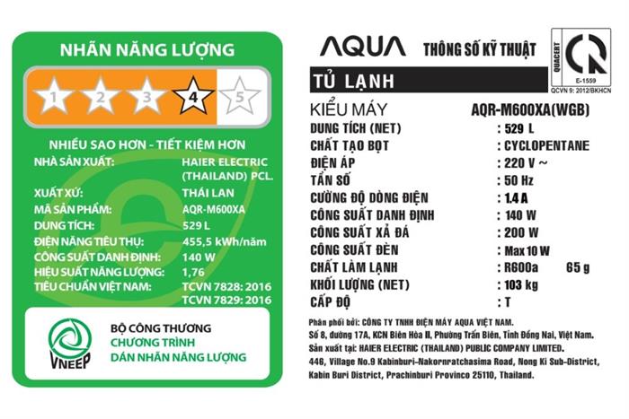 Tủ lạnh AQUA Inverter 529 lít AQR-M600XA(WGB) – Multi Door 4 cánh sang trọng, dung tích lớn, công nghệ làm lạnh nhanh và Inverter tiết kiệm điện – lựa chọn tối ưu cho gia đình đông người.